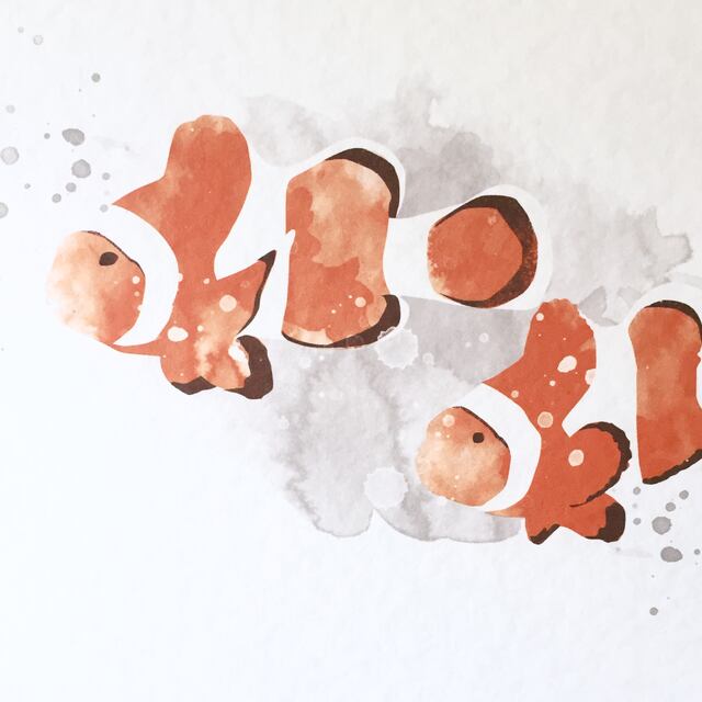 連れ立って泳ぐ2匹のクマノミのアートポスター。