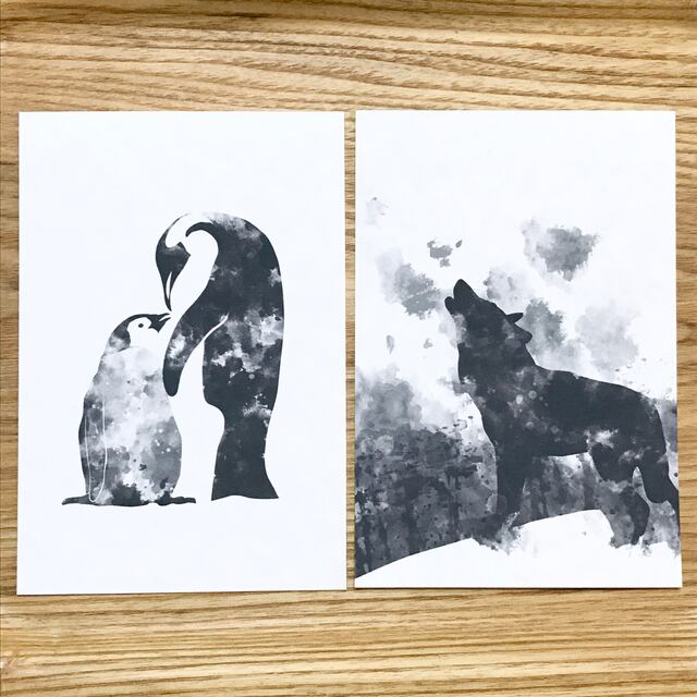 静かな雰囲気の動物シリーズをポストカードセットにしました。